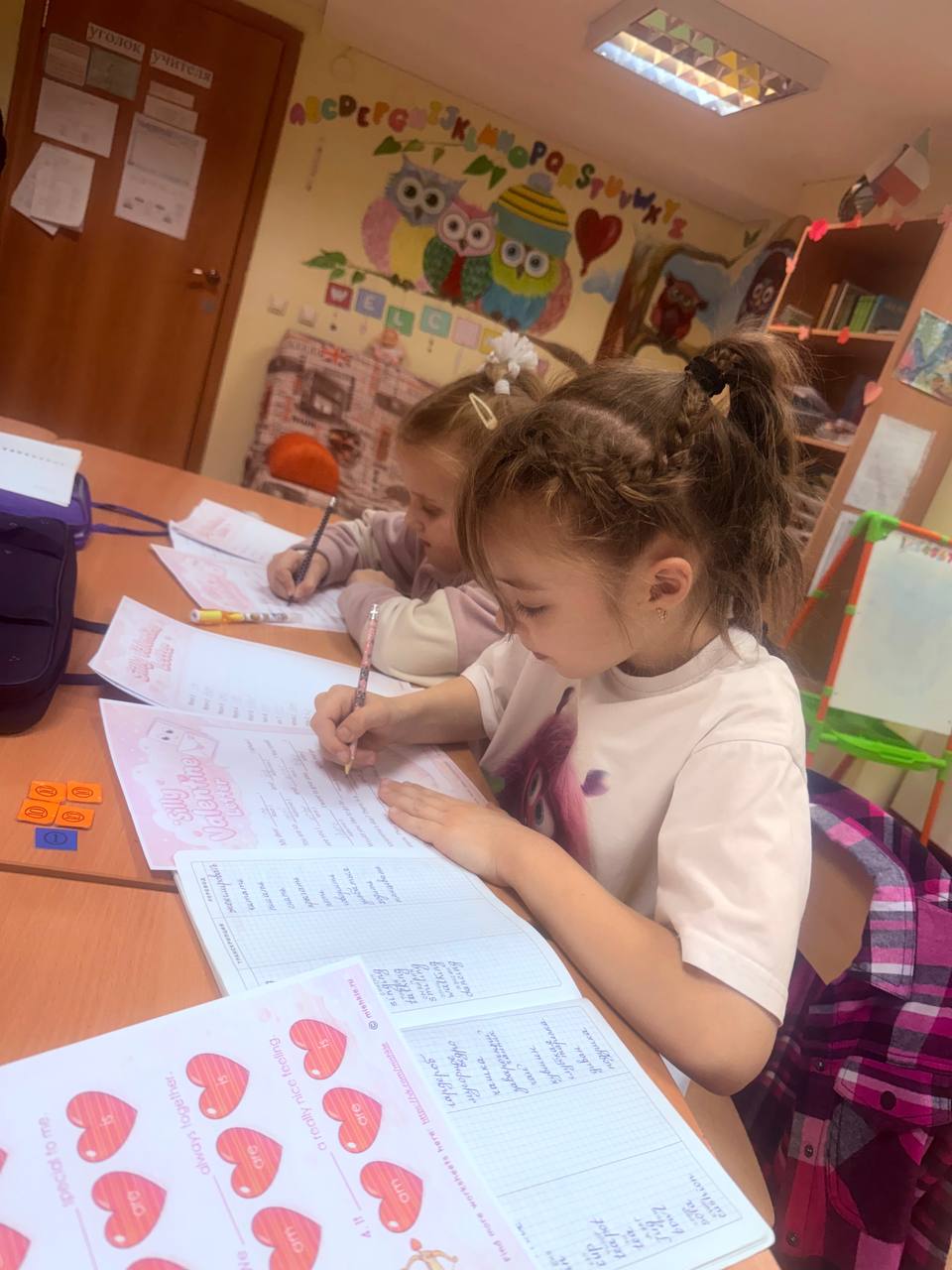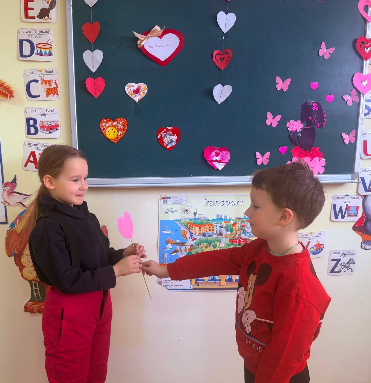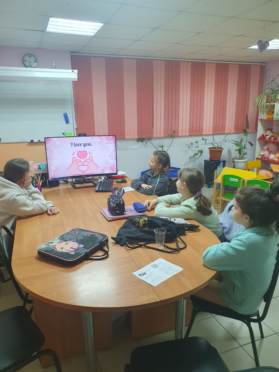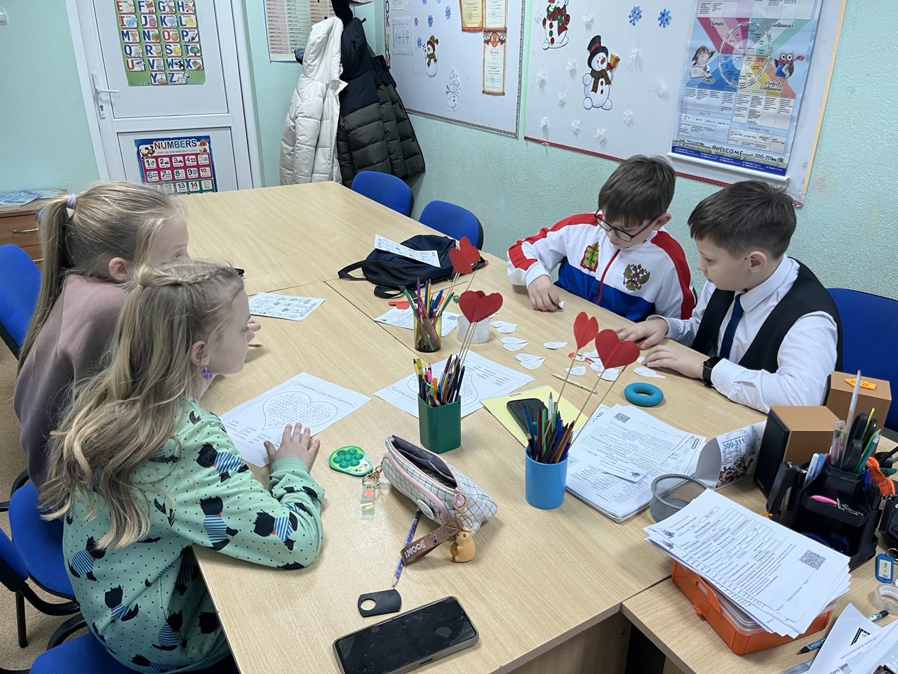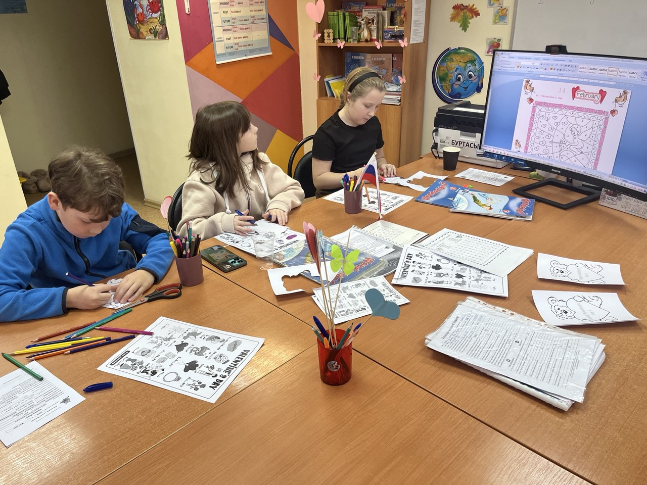 Мы заранее украсили офисы, преподаватели подготовили тематические уроки. Дети шли с валентинками, презентами друг для друга и очень хорошим настроением на занятия.