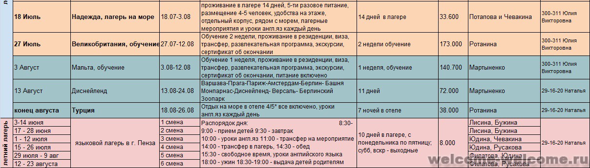 Набираем группы детей и взрослых в организованные поездки по следующим направлениям: